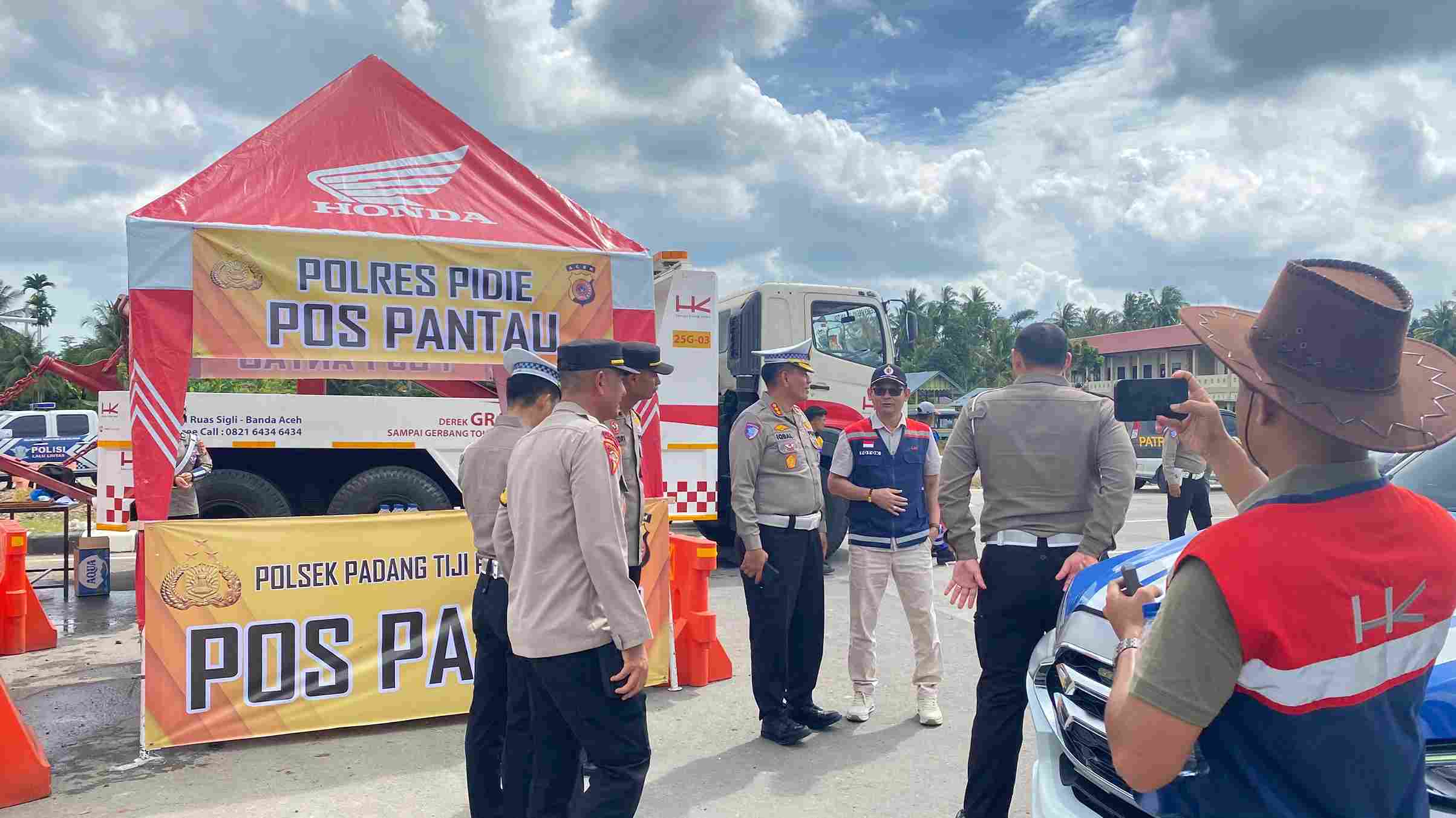 BANDA ACEH – Dirlantas Polda Aceh Kombes M Iqbal Alqudusy, yang juga Kasatgasopsda Lilin Seulawah 2024 meninjau pos pengamanan dan pelayanan Natal dan Tahun Baru (Nataru) di Pelabuhan Ulee Lheue, Kota Banda Aceh dan Bundaran Lambaro, Kabupaten Aceh Besar, Sabtu, 21 Desember 2024.