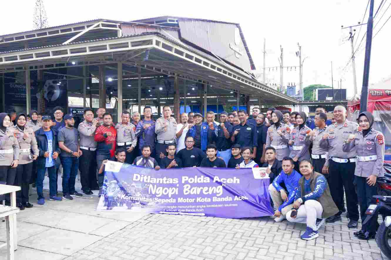 BANDA ACEH – Dalam upaya meningkatkan kesadaran keselamatan berlalu lintas, Ditlantas Polda Aceh menggelar kegiatan ngopi bareng bersama sejumlah komunitas sepeda motor di Kota Banda Aceh.