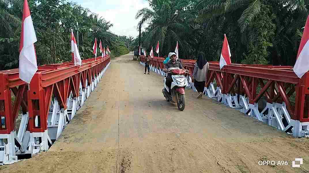 Jelang Lebaran, TNI AD Rampungkan Pembangunan Jembatan Bailey Ds. Blang Gleum, Kec. Julok, Aceh Timur