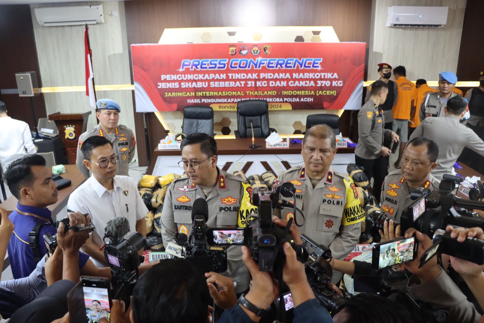 Diketahui, Ditresnarkoba Polda Aceh telah berhasil mengungkap peredaran gelap narkotika jenis sabu jaringan internasional, Thailand—Indonesia (Aceh), seberat 31 kg. Selain itu juga berhasil mengamankan narkotika jenis ganja seberat 370 kg.