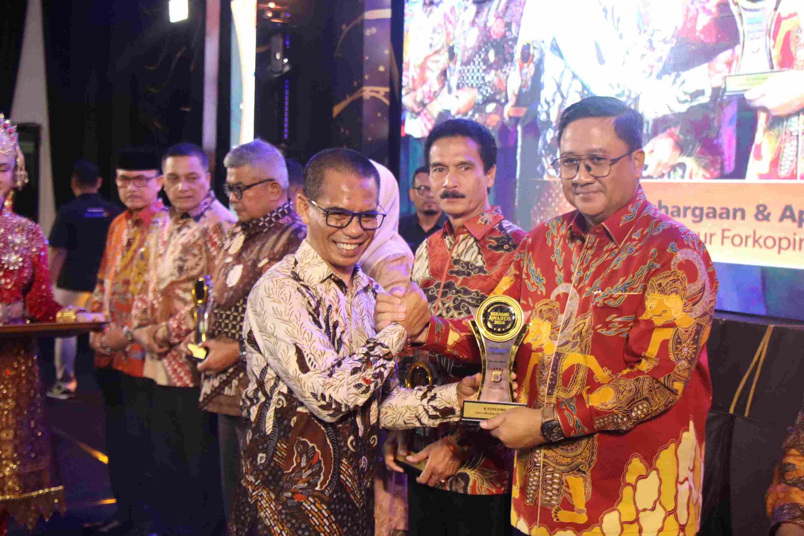 BANDA ACEH – Kepala Kepolisian Daerah Aceh, Irjen Achmad Kartiko menerima penghargaan pada malam puncak Serambi Awards 2024.