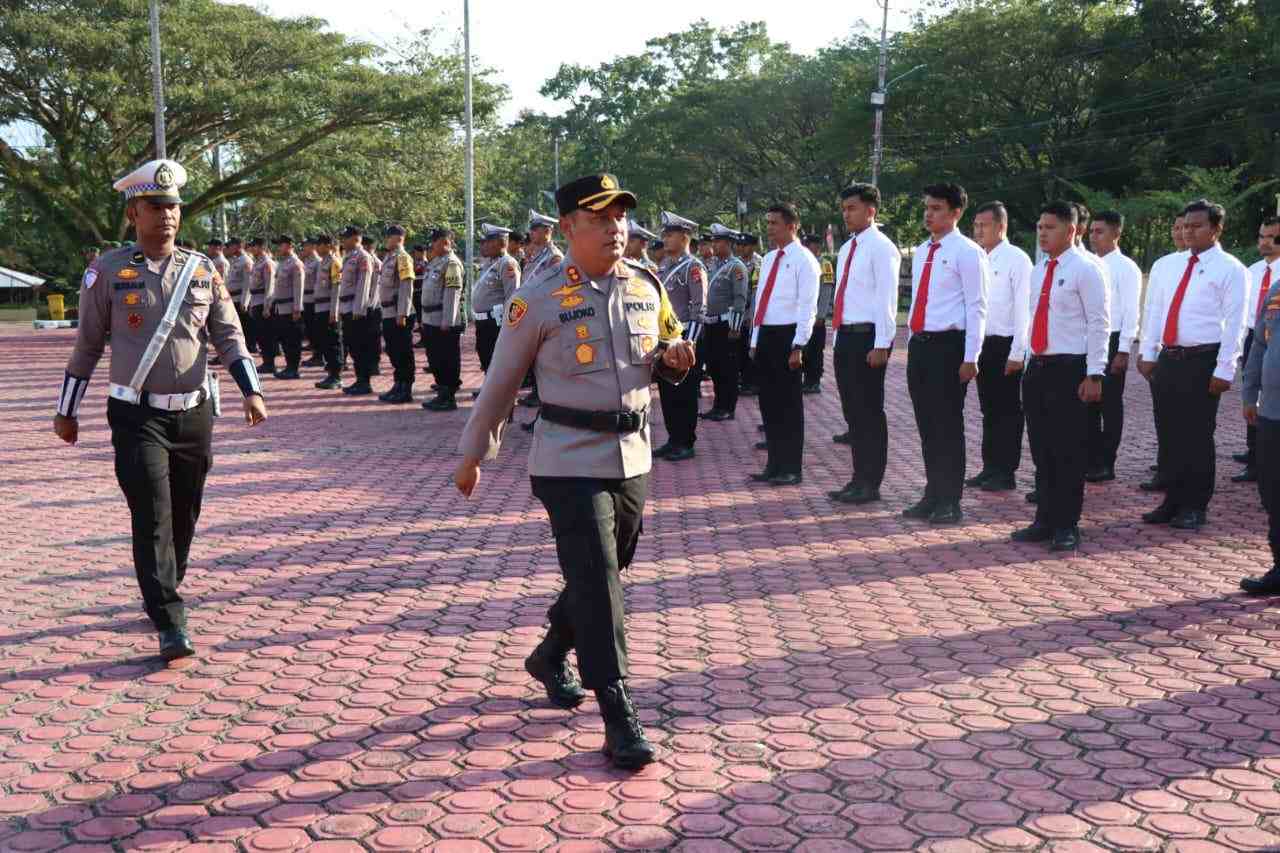 Apel gelar pasukan tersebut turut dihadiri oleh Forkopimda, para tamu undangan serta diikuti oleh peserta Apel yang terdiri dari 1 Pleton Perwira,1 Pleton Staf Gabungan Polres.