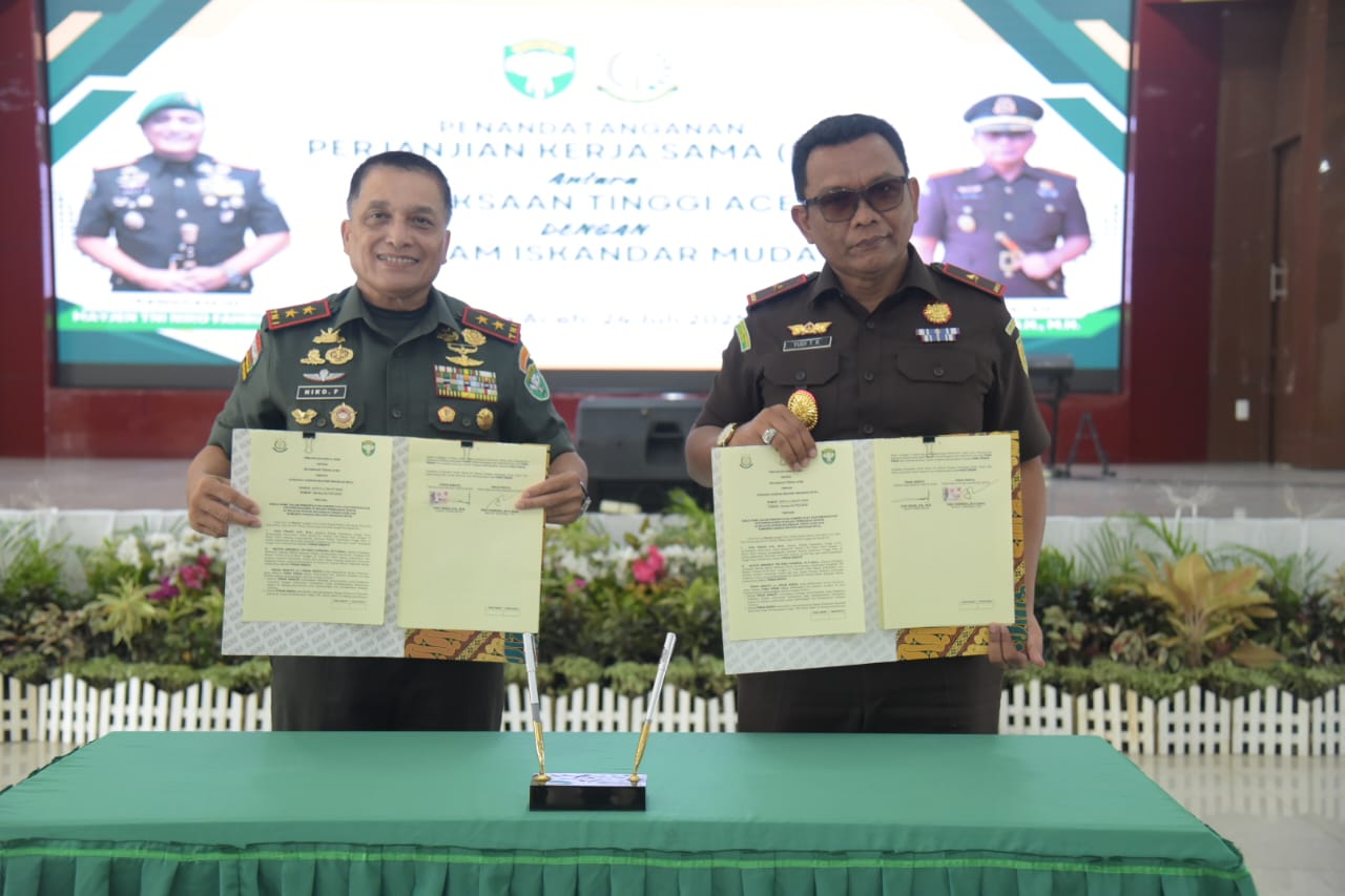 Setelah apel, acara dilanjutkan dengan penandatanganan Perjanjian Kerja Sama (PKS) antara Kejati Aceh dan Kodam Iskandar Muda. Penandatanganan ini menjadi langkah strategis memperkuat hubungan kelembagaan, khususnya dalam mendukung tugas-tugas penegakan hukum di wilayah Aceh.