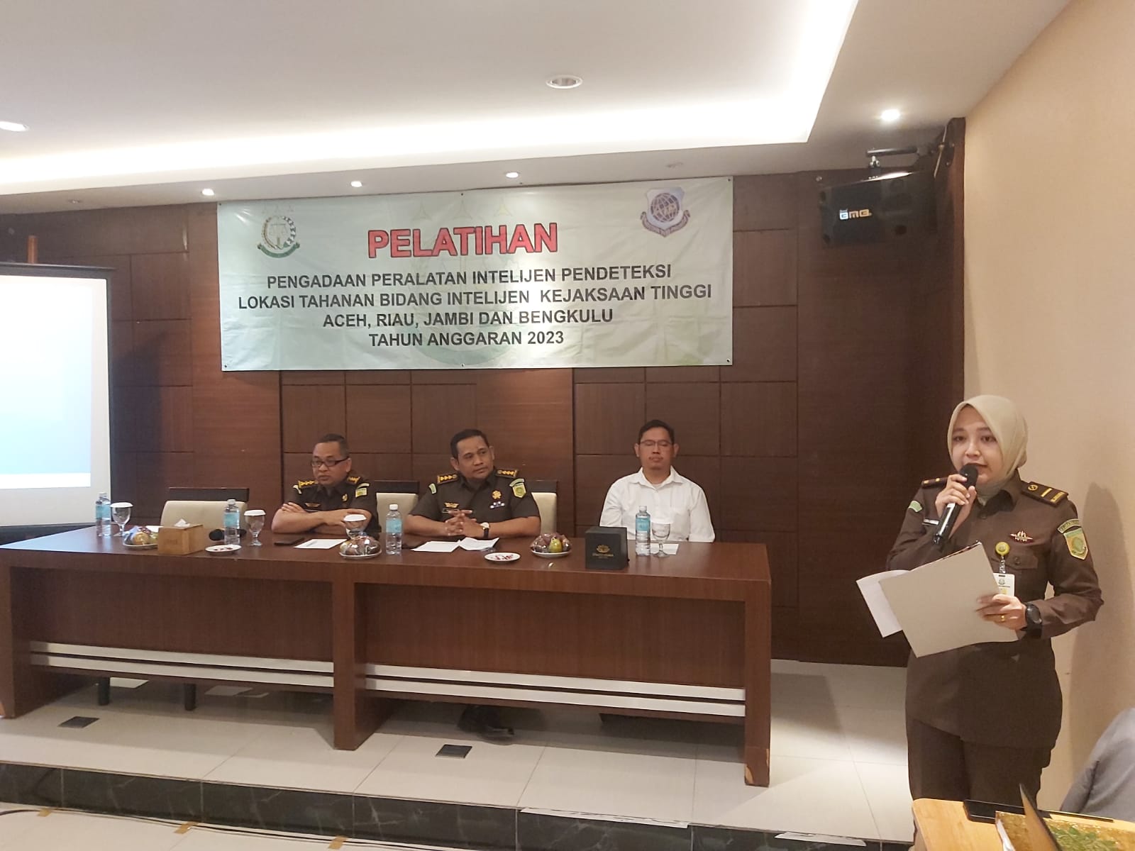 BANDA ACEH – Kepala Kejaksaan Tinggi Aceh yang diwakili oleh Asisten Bidang Intelijen Mukhzan, S.H.,M.H. membuka acara sosialisasi dan pelatihan penggunaan alat pendeteksi (detection kit) tahanan kota dan tahanan rumah tahun anggaran 2023, 31 Januari 2024 bertempat di Portala Gran Arabia Hotel Banda Aceh.