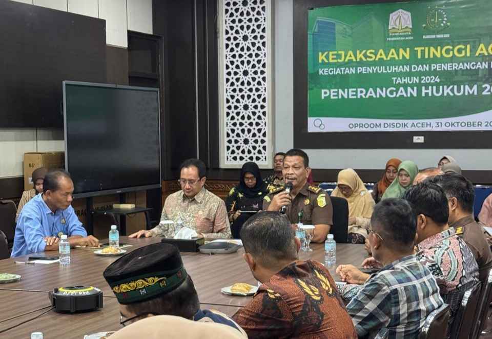 BANDA ACEH – Kejaksaan Tinggi (Kejati) Aceh yang bekerjasama dengan Dinas Pendidikan Aceh (Disdik Aceh) mengadakan penyuluhan dan penerangan hukum pada Kamis, 31 Oktober 2024.