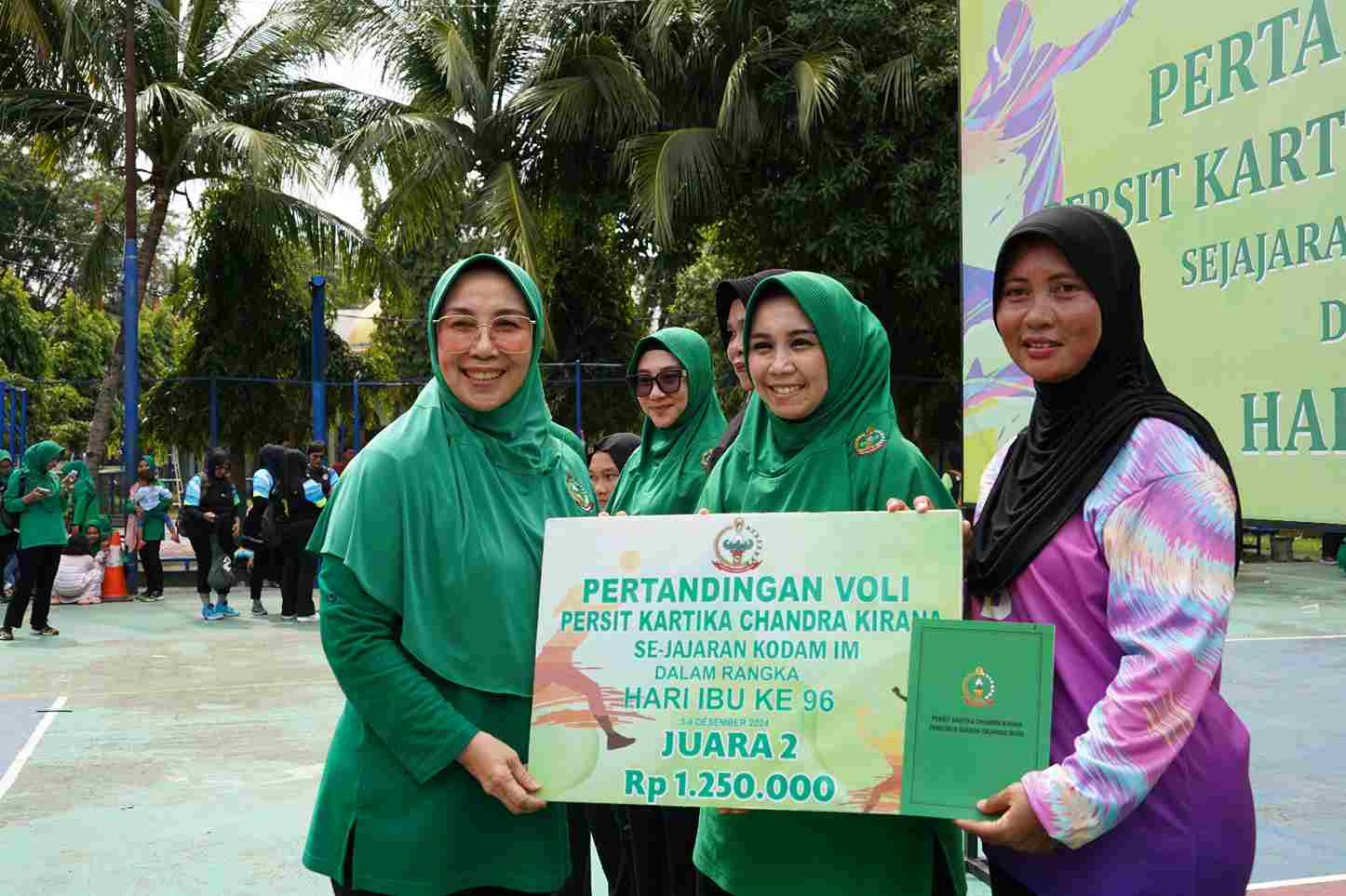 BANDA ACEH – Ketua Persit Kartika Chandra Kirana (KCK) Daerah Iskandar Muda, Ny. Eva Niko Fahrizal, secara resmi membuka pertandingan voli dalam rangka memperingati Hari Ibu ke-96 di lapangan voli Pomdam IM, Rabu (4/12/2024).