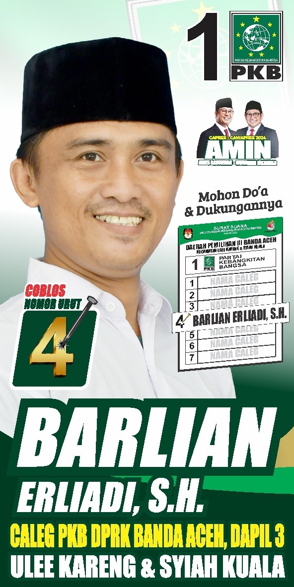 BANDA ACEH – Menuju Dewan Perwakilan Rakyat Kota (DPRK) Banda Aceh, Barlian, berkomitmen mewakili aspirasi rakyat, dengan menawarkan Empat program unggulan. Program tersebut menjadi perioritas dari dana aspirasi dewan ketika terpilih menduduki DPRK Banda Aceh.