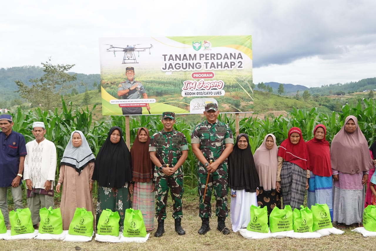 Pada kesempatan tersebut, di tengah kebun jagung, Pangdam IM berkesempatan memberikan bantuan sosial bagi masyarakat.