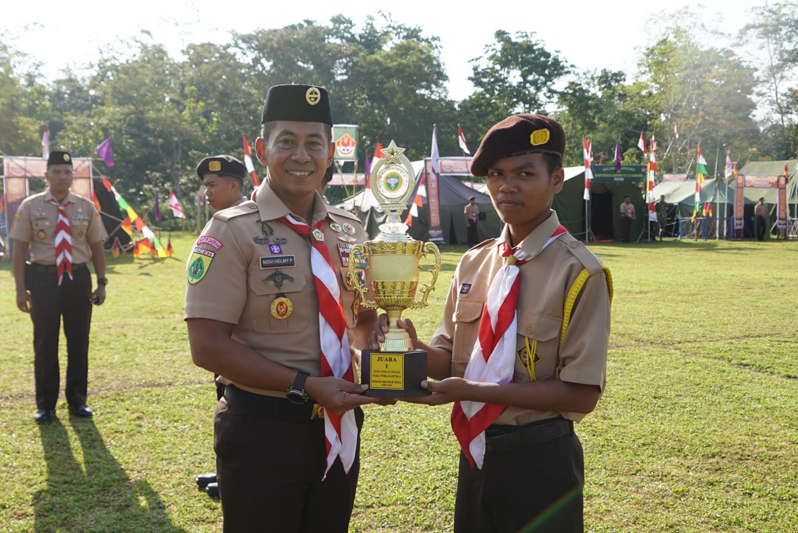 ACEH BESAR – Panglima Komando Daerah Militer Iskandar Muda (Pangdam IM) Mayor Jenderal TNI Novi Helmy Prasetya, S.I.P, M.I.P., memimpin Upacara pembukaan Perkemahan Pramuka Saka Wira Kartika terpusat tingkat Kodam TA 2024.