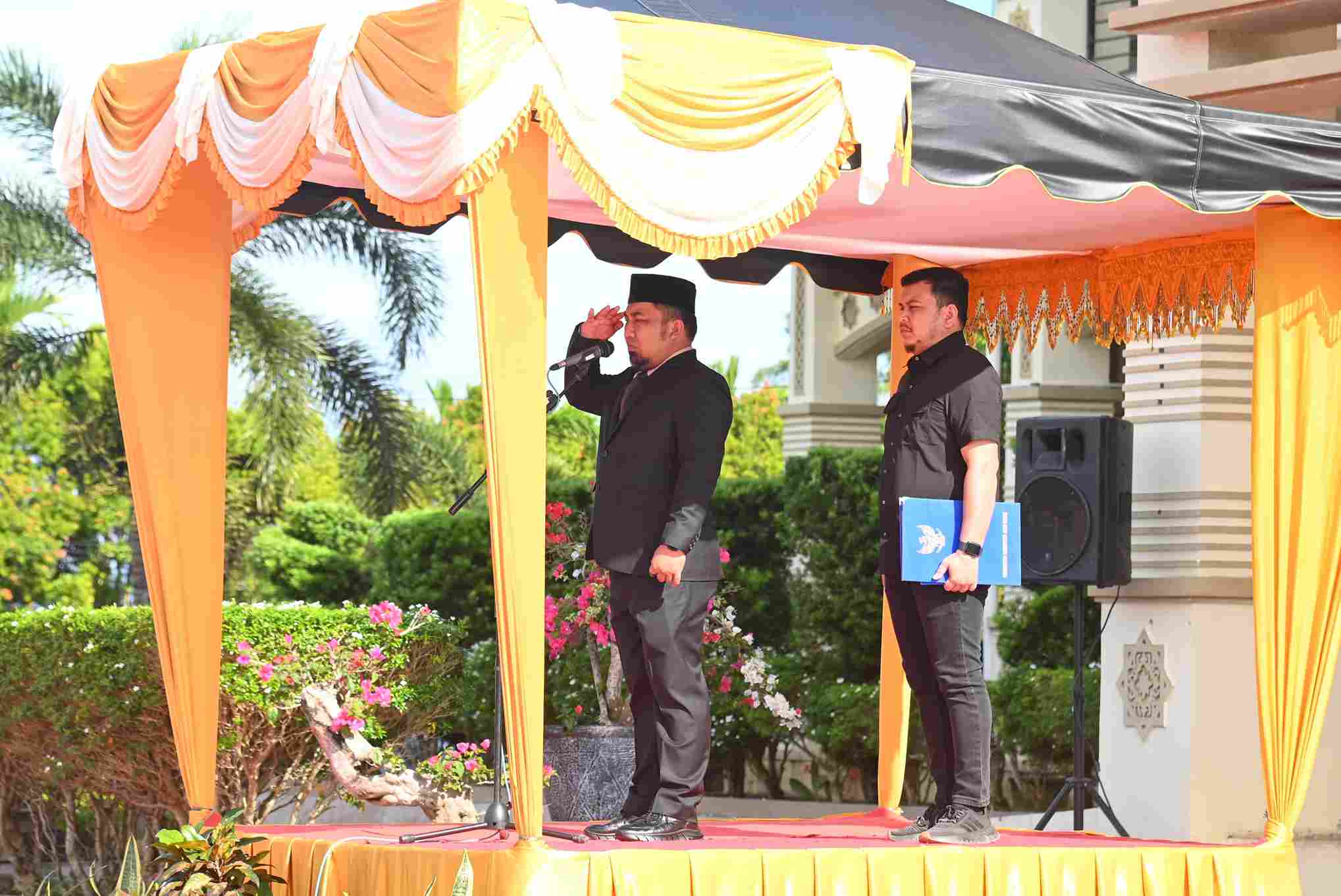 Penjabat (Pj) Bupati Aceh Besar Muhammad Iswanto SSTP MM bertindak sebagai Inspektur Upacara.