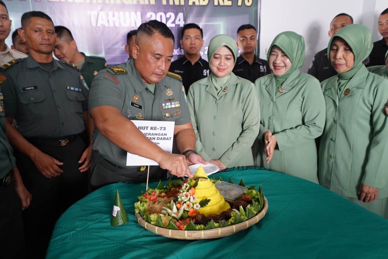 BANDA ACEH – Kepala Penerangan Kodam Iskandar Muda (Kapendam IM) Kolonel Inf Irhamni Zainal, S.I.P, M.Si, memimpin acara syukuran Hari Ulang Tahun ke-73 Penerangan Angkatan Darat (AD) tahun 2024, di Markas Pendam IM, Banda Aceh, Selasa (23/1/2024).
