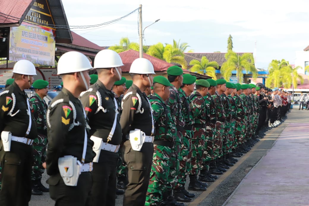 Kapolres Pidie Kapolres Pidie, AKBP Jaka Mulyana, S.I.K., M.I.K.,selaku pimpinan apel, membacakan amanat Kapolri yang menekankan pentingnya kesiapan personel dan sarana prasarana untuk mendukung keamanan perayaan Natal dan Tahun Baru.