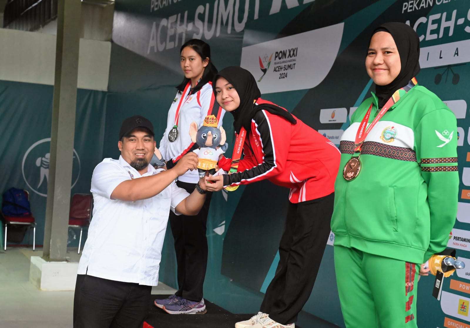 Setelah mengalungkan medali kepada nomor Double Trap Men selang beberapa menit Pj Bupati Aceh Besar Muhammad Iswanto juga mengalungkan medali kepada nomor 10M Running Target Women Mixed mulai dari perunggu diberikan kepada Emili Wahyuni atlet dari Sumatera Utara, kemudian perak diberikan kepada Mauliddya Ekadarmayati atlet yang berasal dari Jawa Tengah dan terakhir Emas diberikan kepada Sylva Flowrend yang merupakan atlet asal Aceh.