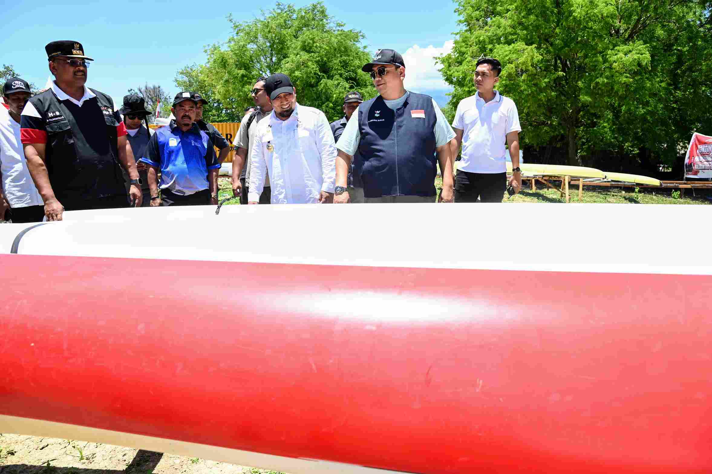 KOTA JANTHO – Penjabat (Pj) Gubernur Aceh Dr Drs Safrizal ZA MSi, Minggu (01/09/2024), meninjau kesiapan venue cabang olahraga (Cabor) Dayung di Waduk Keuliling Gampong Bak Sukon Kecamatan Cot Glie, Aceh Besar. Dalam kunjungan yang didampingi oleh Pj Bupati Aceh Besar Muhammad Iswanto SSTP MM itu, Pj Gubernur Safrizal melakukan peninjauan pada semua sisi venue, mulai dari fasilitas parkir perahu hingga dermaga menuju alur perlombaan serta menaikturunkan perahu.
