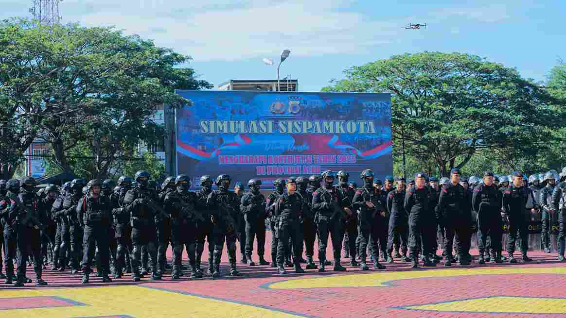 BANDA ACEH – Polda Aceh menggelar simulasi Sistem Pengamanan Kota (Sispamkota) dalam rangka menghadapi kontijensi tahun 2025. Kegiatan yang digelar di Lapangan Mapolda Aceh itu disaksikan langsung oleh Kapolda Aceh Irjen Pol Dr. Achmad Kartiko, Selasa, 29 April 2025.