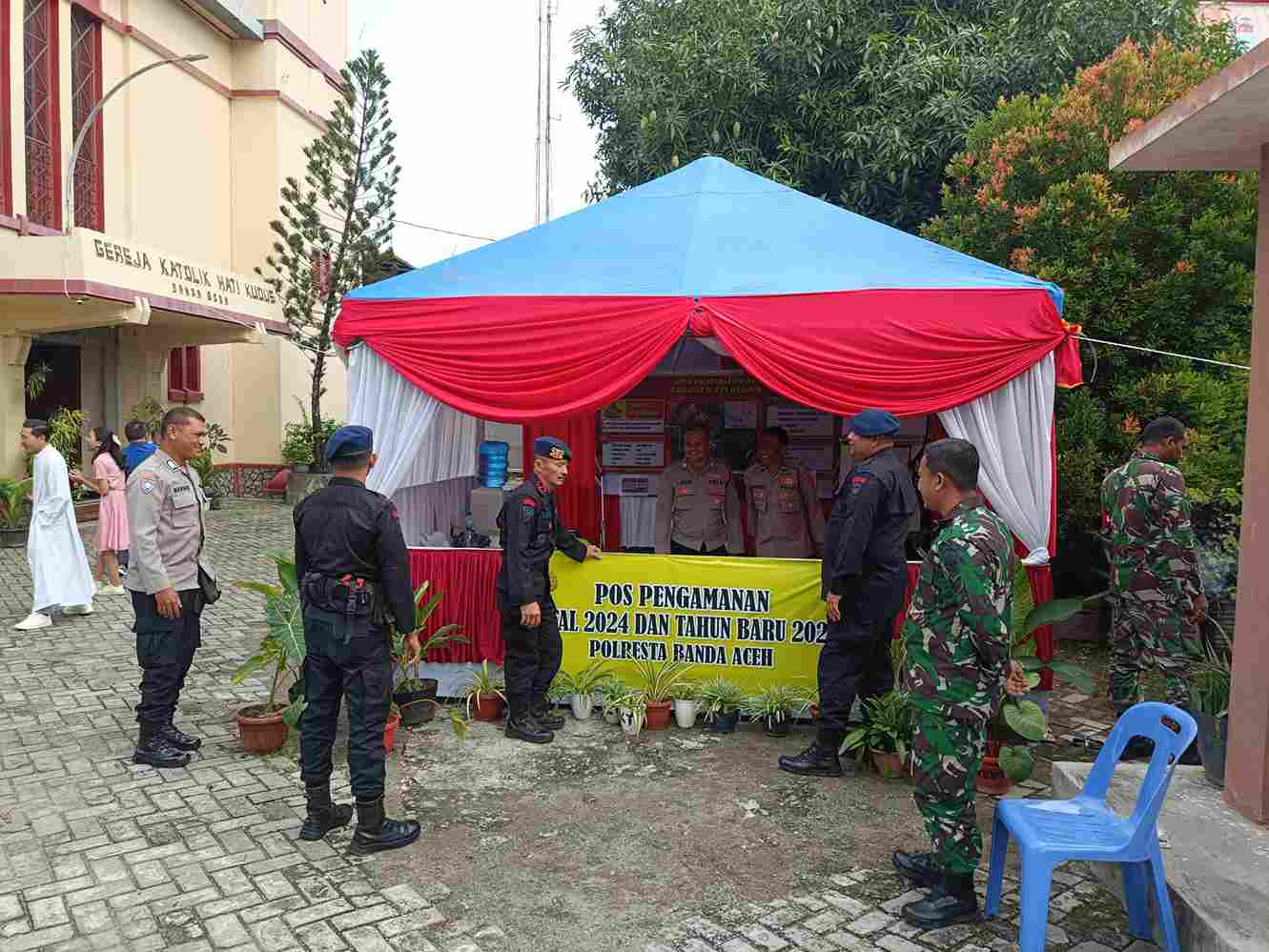 Pada hari yang sama, Subsatgas Jibom Satgas Ops Lilin Seulawah 2024 Polda Aceh melaksanakan sterilisasi di Gereja Katolik Hati Kudus, Kota Banda Aceh.