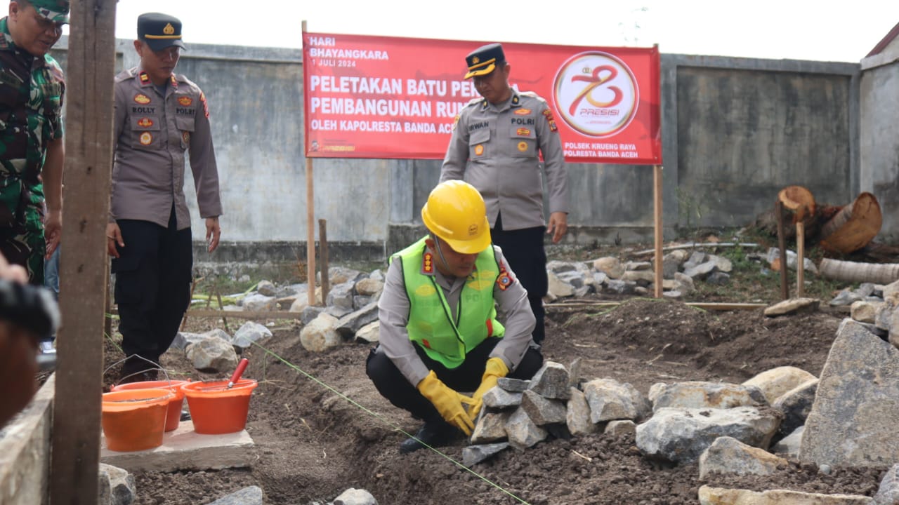 Pembangunannya pun dimulai sejak hari ini, Jumat (12/7/2024), ditandai dengan peletakan baru pertama oleh Kapolresta Banda Aceh, Kombes Pol Fahmi Irwan Ramli didampingi Kabid Perumahan Dinas Perkim Aceh, Agus Salim.