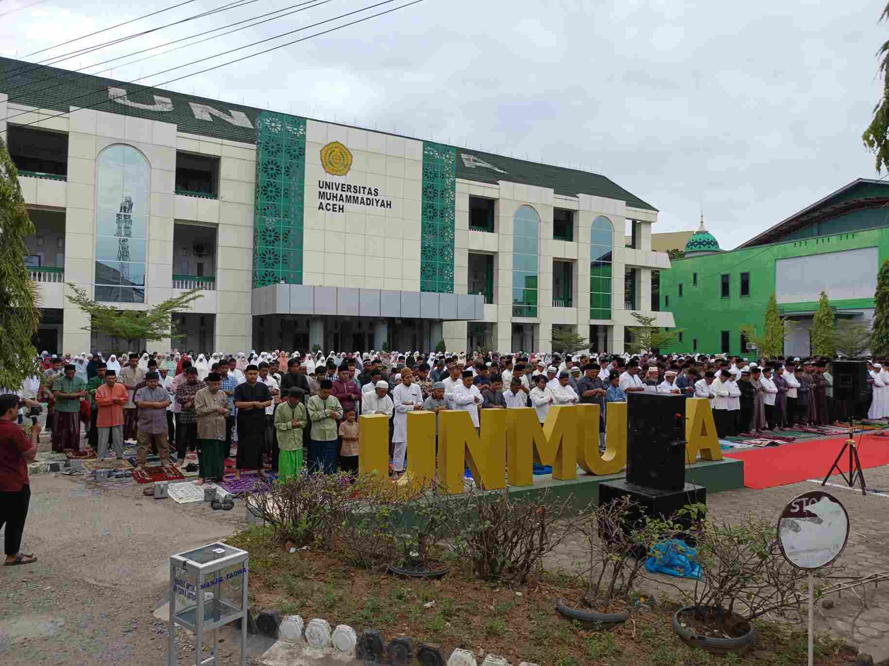 Pelaksanaan shalat ied di halaman kampus Unmuha berkat kerjasama takmir masjid Taqwa Muhammadiyah Banda Aceh, Pimpinan Wilayah Muhammadiyah Aceh dengan Unmuha.