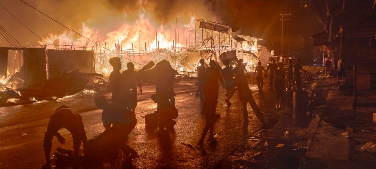 Dalam hitungan menit, api merambat ke plafon dan dengan cepat menyebar ke bangunan di sekitarnya. Besarnya kobaran api serta kondisi bangunan yang sebagian besar berbahan dasar kayu membuat kebakaran semakin sulit dikendalikan.