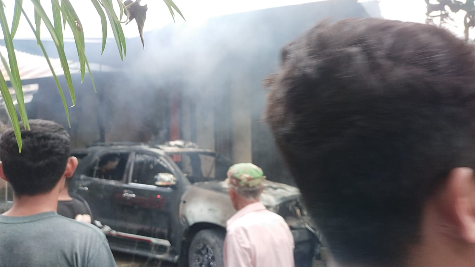 ACEH BESAR – Sebuah mobil Fortuner BL 1772 LG yang terbakar yang kemudian merambat kerumah Safwan umur (45) di Jln. Tomat Desa Ulee Lueng Kec. Darul Imarah Kab. Aceh Besar, Rabu 24 Januri 2024 sekitar pukul 15.55 WIB.