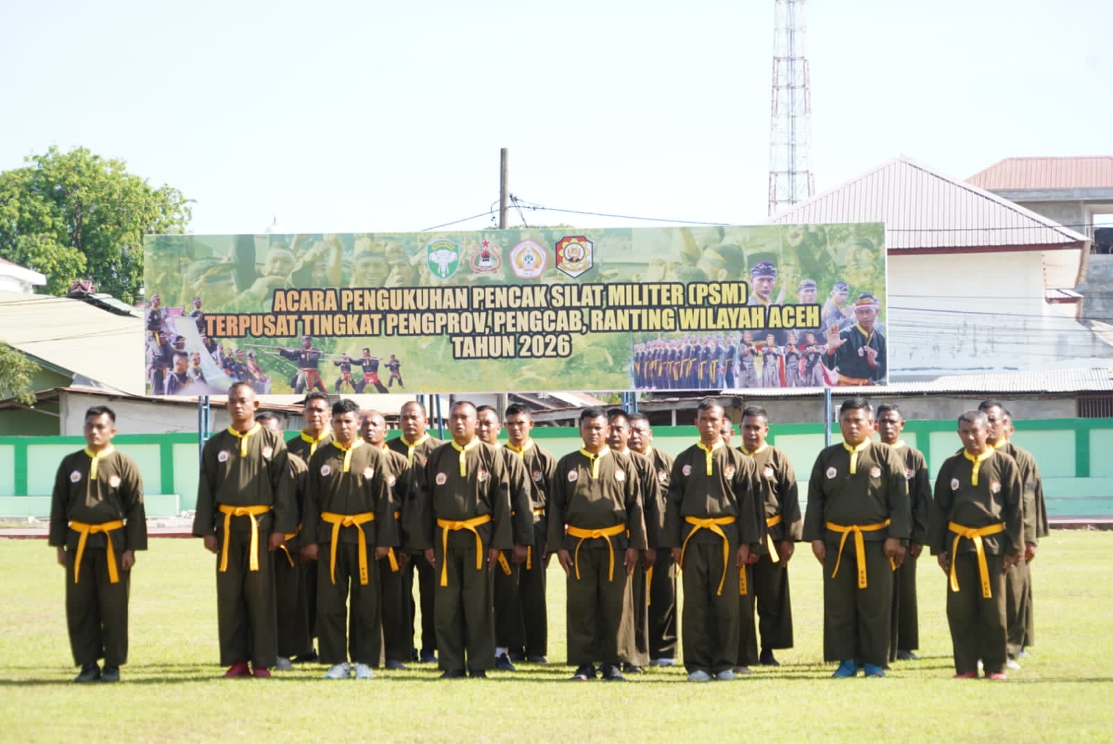 BANDA ACEH – Sekjen PP PSM Kukuhkan Kepengurusan Pencak Silat Militer Wilayah Provinsi Aceh Sekretaris Jenderal Pengurus Pusat Pencak Silat Militer (PP PSM), Kolonel Inf Gempar Sebayang, secara resmi mengukuhkan dan mengesahkan kepengurusan Pencak Silat Militer (PSM) tingkat pengurus provinsi, cabang, dan ranting wilayah Aceh tahun 2026. Kegiatan tersebut berlangsung di Lapangan Jasdam Iskandar Muda, Selasa (14/4/2026), dengan dihadiri ratusan peserta dari berbagai unsur TNI, pengurus organisasi, serta tamu undangan.