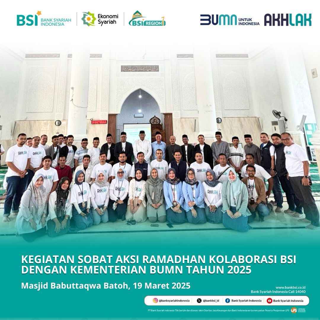 Tahun ini, BSI turut serta dalam program Sobat Aksi Ramadhan BUMN 2025 dengan berbagai kegiatan serta bantuan bagi masjid. Acara ini berlangsung di Masjid Babuttaqwa Batoh, Banda Aceh.