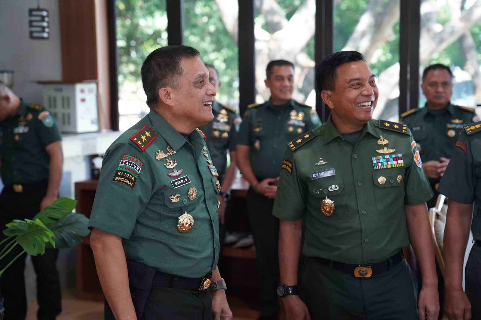 BANDA ACEH – Pangdam IM, Mayor Jenderal TNI Niko Fahrizal, M.Tr.(Han) menyambut kunjungan dan menjamu makan siang bersama Ketua Tim Pokja bidang Polkamnas Sahli Kasad Mayjen TNI Edy Sutrisno, S.E.,M.M. di Balee Sanggamara, Makodam IM, Banda Aceh, Rabu (05/06/24).