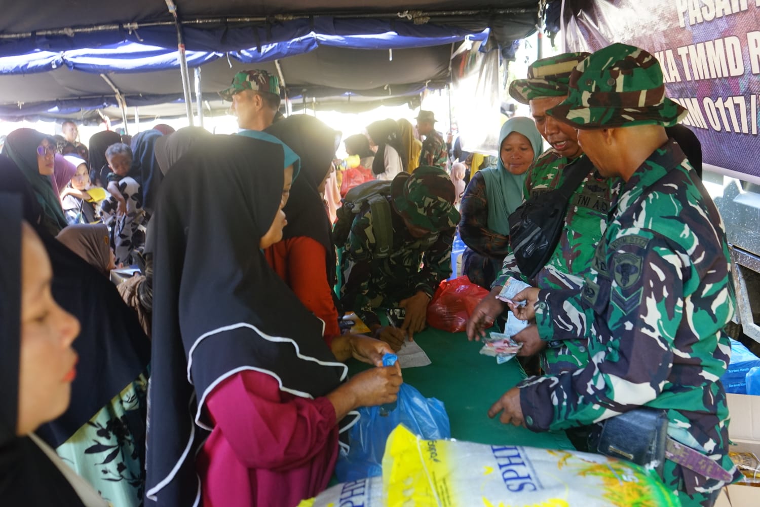 Selain pengobatan gratis, kegiatan pasar murah juga menjadi daya tarik tersendiri bagi masyarakat. Warga tampak antusias memadati tenda pasar murah yang menyediakan berbagai kebutuhan pokok dengan harga terjangkau. Kegiatan ini dinilai sangat membantu masyarakat dalam memenuhi kebutuhan sehari-hari sekaligus mengurangi beban pengeluaran rumah tangga.