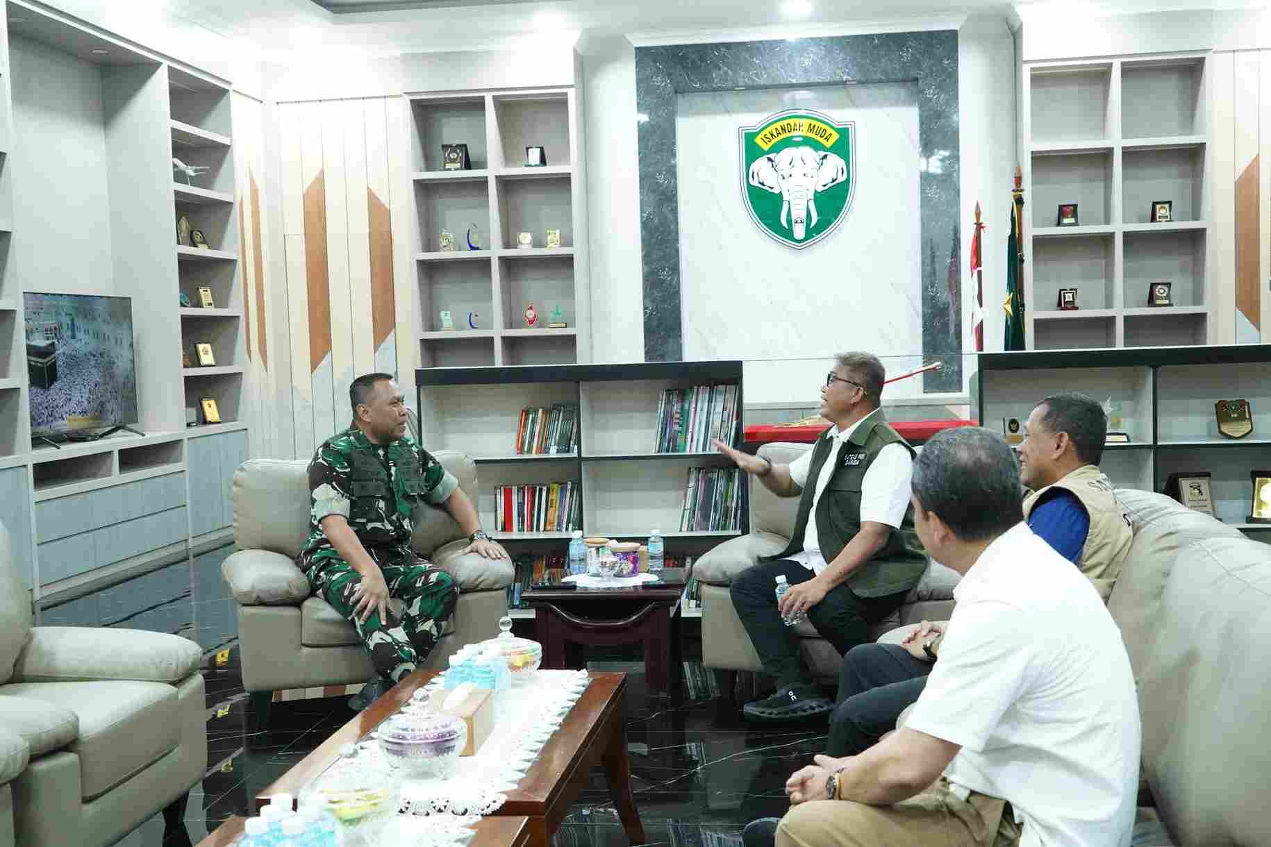 Ia menuturkan bahwa maksud kunjungannya ke Kodam IM adalah untuk memperkuat sinergi dan koordinasi operasional antara Satgas PKH dan TNI di wilayah Aceh dalam rangka mendukung kebijakan nasional terkait konservasi dan penertiban kawasan hutan.