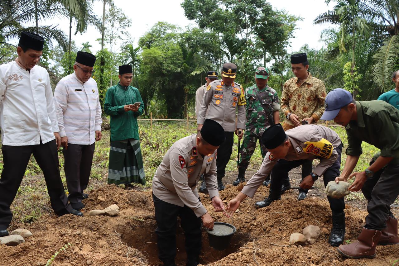 ACEH TAMIANG – Wakil Kepala Kepolisian Daerah (Wakapolda) Aceh Brigjen Armia Fahmi meletakkan batu pertama pembangunan masjid pesantren Babul Ulum di Desa Simpang Kiri, Kecamatan Tenggulun, Kabupaten Aceh Tamiang. Jumat, 7 Juni 2024.