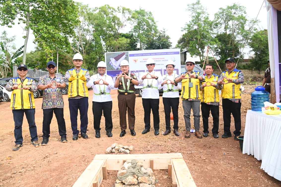 KOTA JANTHO – Penjabat (Pj) Bupati Aceh Besar Muhammad Iswanto SSTP MM yang diwakili Sekda Aceh Besar Drs Sulaimi MSi menghadiri peletakan batu pertama pembangunan rumah susun Kejaksaan Tinggi Aceh di Gampong Lamsi Daya, Kecamatan Darul Imarah, Rabu (4/12/2024).