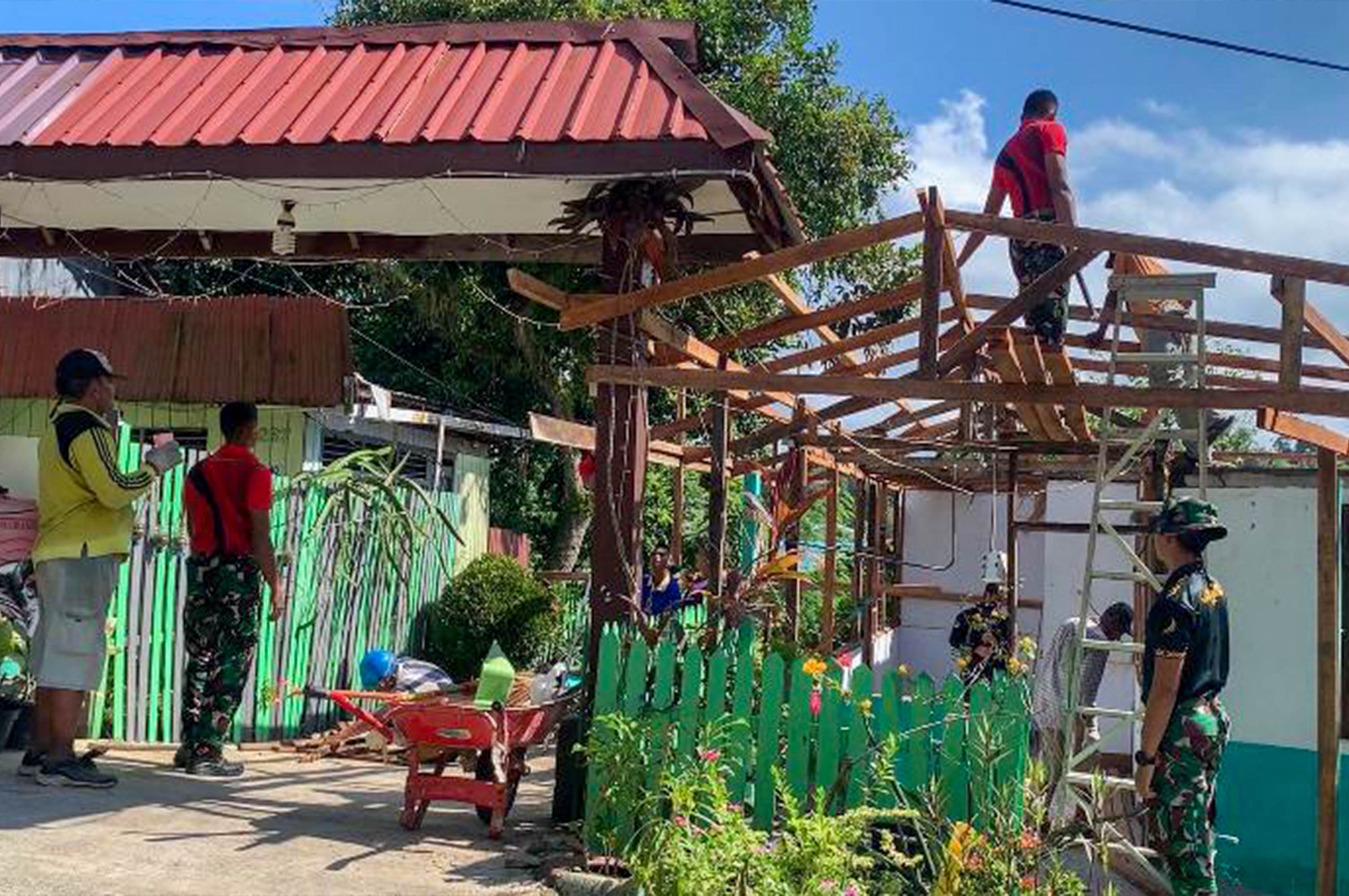 Mereka tak kenal lelah, memasang kerangka atap, memperbaiki kusen jendela, dan melaksanakan setiap tugas dengan penuh dedikasi.