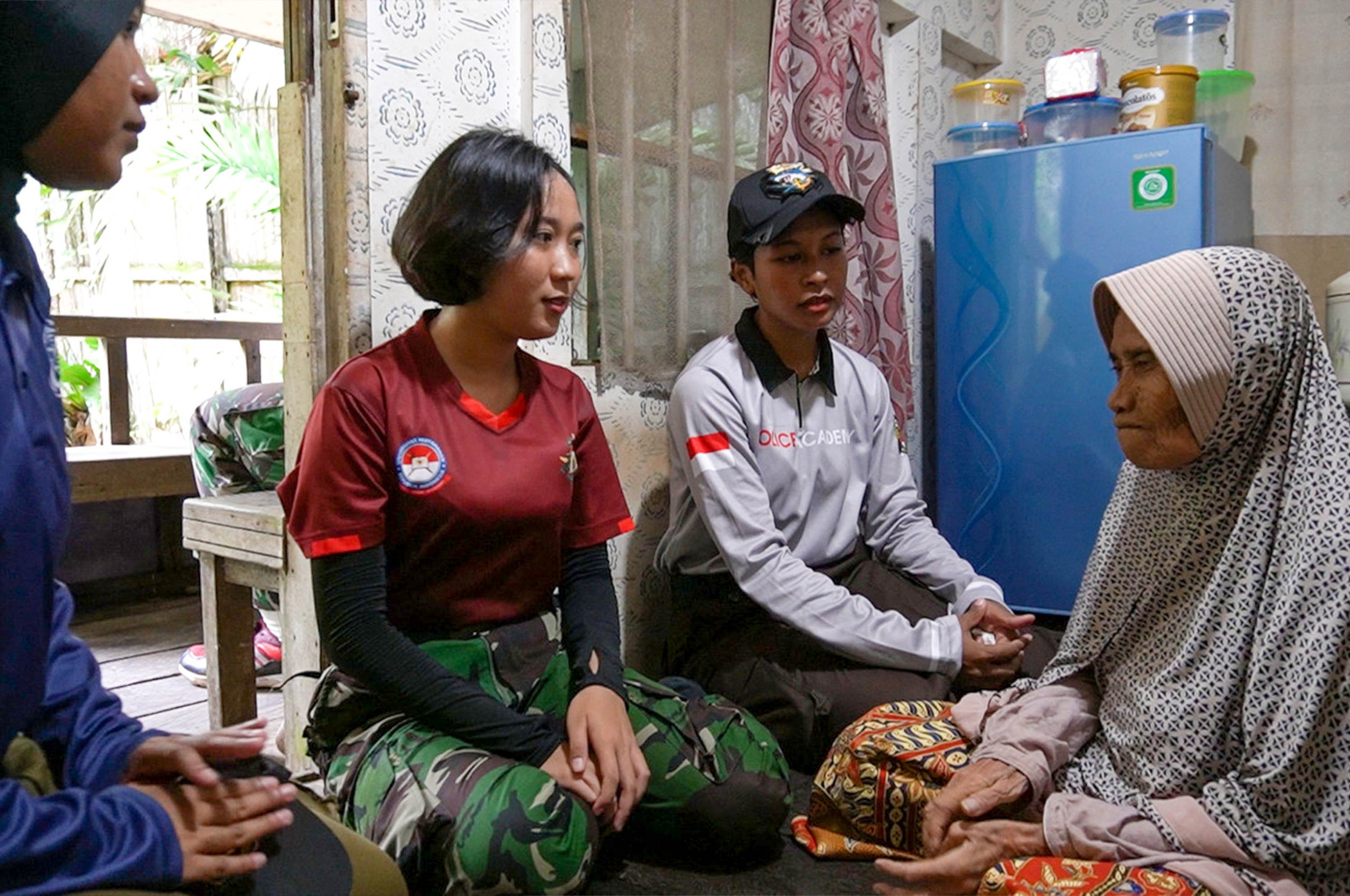 Siti Juriah, seorang lansia yang rumahnya berada di dalam area Perkebunan didatangi 6 taruna peserta Latsitardanus ke 44 diantaranya Taruna dan Praja yang memberikan secara langsung bantuan berupa makanan.